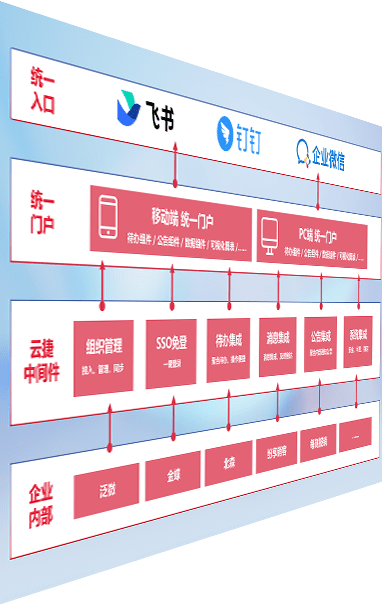 对协作平台提供支持服务,,,,支持企业应用与协作平台对接,,,包含组织同步、、、消息集成、、、待办集成等。。。。支持目前主流的协作平台:钉钉、、、、企微和飞书。。。。